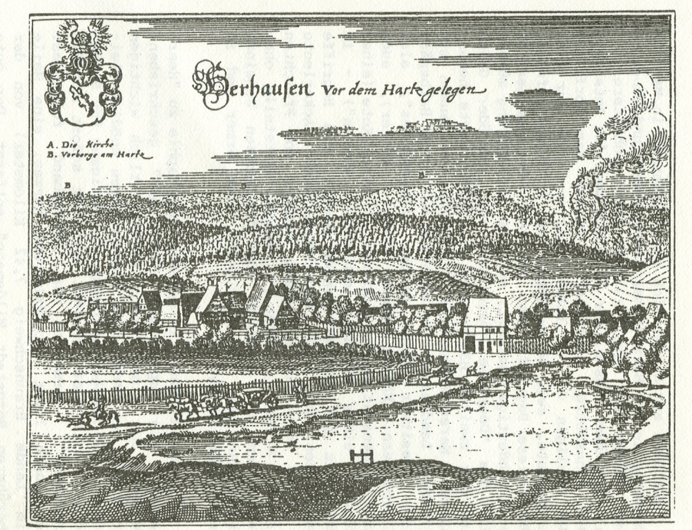 Heerhausen ist den Herren Herzogen von Braunschweig Lüneburg Wolfenbüttelschen Theils/ mit Adelichen Rittermässigen Roßdienstleistung verwant/ auch sonst mit anderen Adelichen Privilegiis nohttürfftig versehen/ liget unterm Hartze/ ins Südwesten/ in lustiger gegend/ eine gute Meil weges von der berühmten Bergstatt Wildeman: Hat guten Ackerbaw/ Wiesenwachs/ und ansehentliche Weide von allerhand Viehe. Dieser Ansitz ist von einem/ Nahmens Henin Honrode/ zu Herzogen Heinrichen deß Jüngeren Regierungszeiten/ bey dessen Fürstl. En. er in vornehmen Diensten gewesen/ darin auch bey dero Verfolg: und Vertreibung deß Landes beständig verharret/ erbawet/ und Adelich Erbfrey besessen/ ist aber derselbe zu anfang des Kriegesunwesens/ Anno 1626. da der König in Dennemark/ und General Tilly/ eben allhie die erste Batalli gegen einander formiret/ und das Gefechte scharff angetretten/ der König aber in der Nacht biß Lutter an Backenberge/ sich in höchster stille zurück gezogen/ neben der Kirchen ruiniret/ und folgende Jahr ferner gantz zu grunde gerichtet worden. Nach deme aber selbiges Gut voriges Jahres/ und zwar in Anno 1625. der Obriste Johann Koch erblich an sich verkaufft/ folgendes mit Fürstl. Privilegiis, und anderen Lehen und Erbstücken verbessert/ hat es derselbe in diesen vergangenen Kriegeszeiten/ mit grossen Costen in jetzigen zimlichen ansehentlichen Stande gebracht/ auch die Kirche auß dem Fundament auff seinen Kosten gantz new und thauerhafft auffgeführet. Es sind bey diesem Sitze unterschiedene zimlich eingerichtete Gärten/ darin neben etzlichen Lust- und Küchenstücken/ über tausent allerhand Obsbäume verhanden/ springet auch darin eine schöne namhaffte Quelle/ die Nette genant/ treibet ohngefehr ein Büchsenschuß davon einen Mahl- und Oligang/ und wird endlich uff zwey Meil weges so groß/ daß sie eine Mahlmühle mit sechs und mehr Mahlgängen treiben kan. Es ist dieser Ort auch mit allerhand Fischen/ und sonderlich Forellen/ wol begabet. Sonst will man dafür halten/ es hätten vor Alters die Tempelherren diesen und benachbarten Oertern innegehabt/ wie dann auch eine grosse menge Schlacken allhie verhanden/ darauß abzunehmen/ daß ein starckes Schmelz- und Hüttenwerck hie in der nähe getrieben/ und verhanden gewesen.