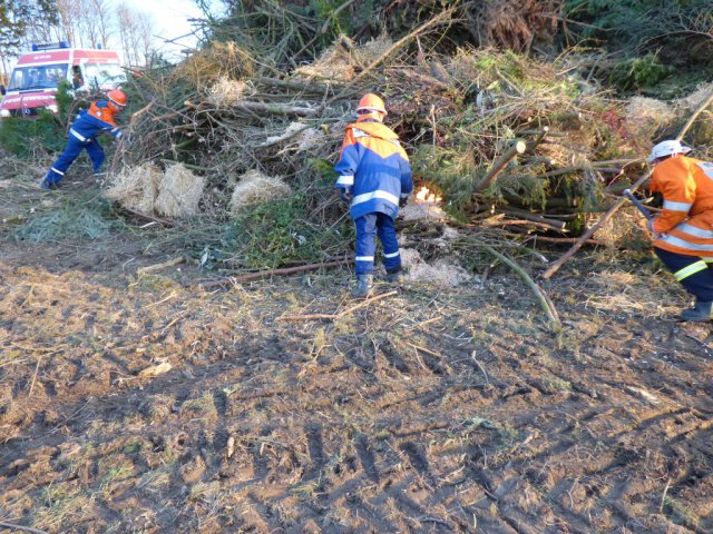 Am Ostersonntag war es wieder soweit und das traditionelle Osterfeuer stand vor der Tür. Die Kameradinnen und Kameraden der Feuerwehr Herrhausen,die Mitglieder der Jugendfeuerwehr, der Ortsrat und einige Herrhäuser Bürger trafen sich bereits am Samstag und bauten das Osterfeuer auf. Durch das schlechte Wetter im Vorfeld der Osterfeiertage war der Feuerplatz leider sehr schlammig, daher entschied man sich die Bewirtung nicht "Auf dem Hainholz" sondern auf halben Weg an der Pumpstation Nettequelle durchzuführen.
