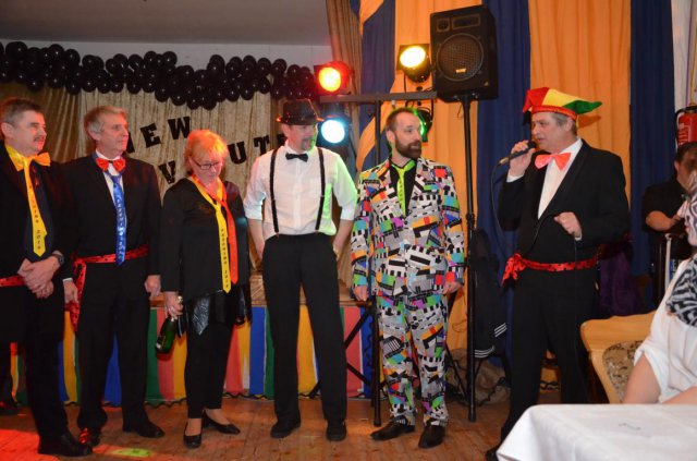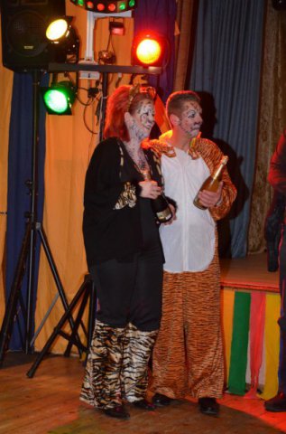 Um Mitternacht folgten dann die letzten beiden Programmpunkte, zuerst wurde das beste Kostümpaar des Abends bekanntgegeben. Das Ehepaar Kolodziej hatte hierbei die Nase vorn. Nun kam es dem Fünfer-Rat noch zu, das neue Prinzenpaar zu erwählen. Einstimmig hatte der Fünferrat beschlossen das Jens-Walter Dröge und Gary Mirwald das neue Prinzenpaar, als Jens der Erste und Gary der Erste, werden sollte. Beide konnten dann unter dem Jubel ihrer neuen Untertanen die Insignien der „Narrenmacht“, die Karnevalskronen, empfangen. Bis spät in die Nacht huldigte dann das Volk ihren neuen Hoheiten.