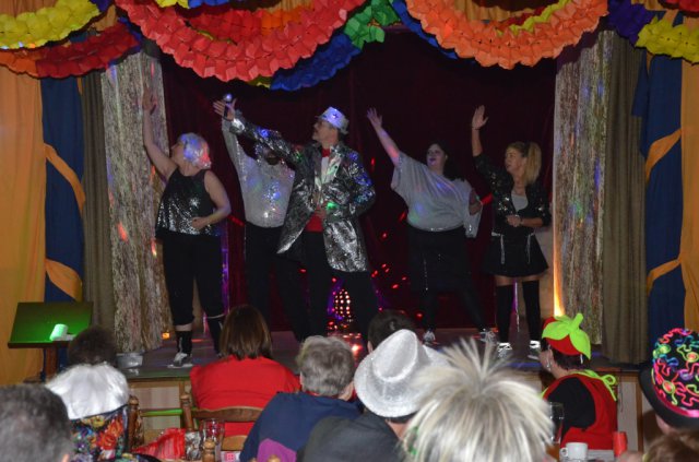 Mit dem zweiten Auftritt des Abend riss die Gruppe „New Evolution“ mit einer mystischen Show die Zuschauer von den Sitzen. Mit einer Mischung aus Lichtshow und Gesangsdarbietung wurden die Narren förmlich verzaubert, was mit waren Beifallsstürmen gedankt wurde. Eine der Künstlerinnen wuchs, das sei noch erwähnt, weit über sich selbst hinaus.