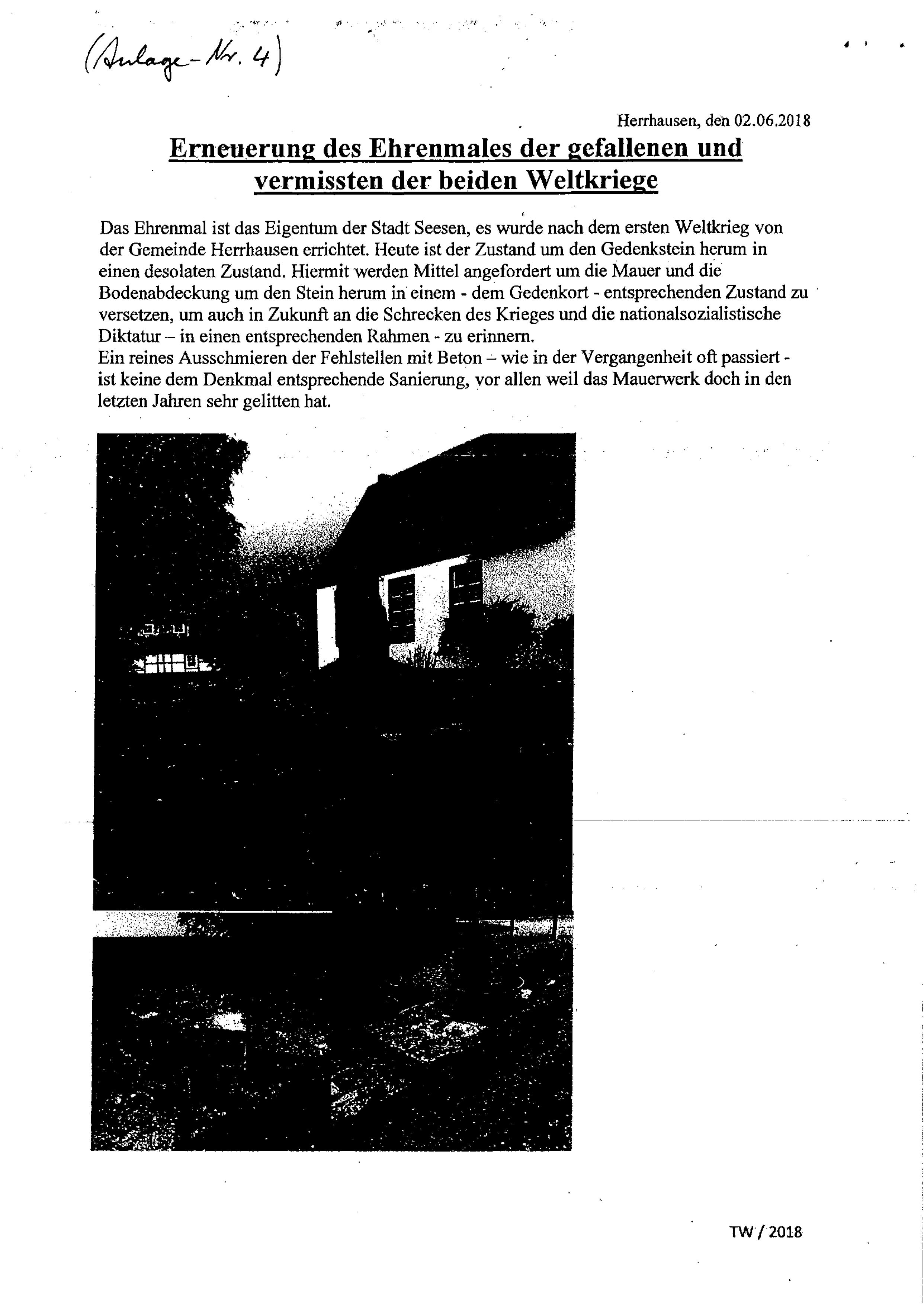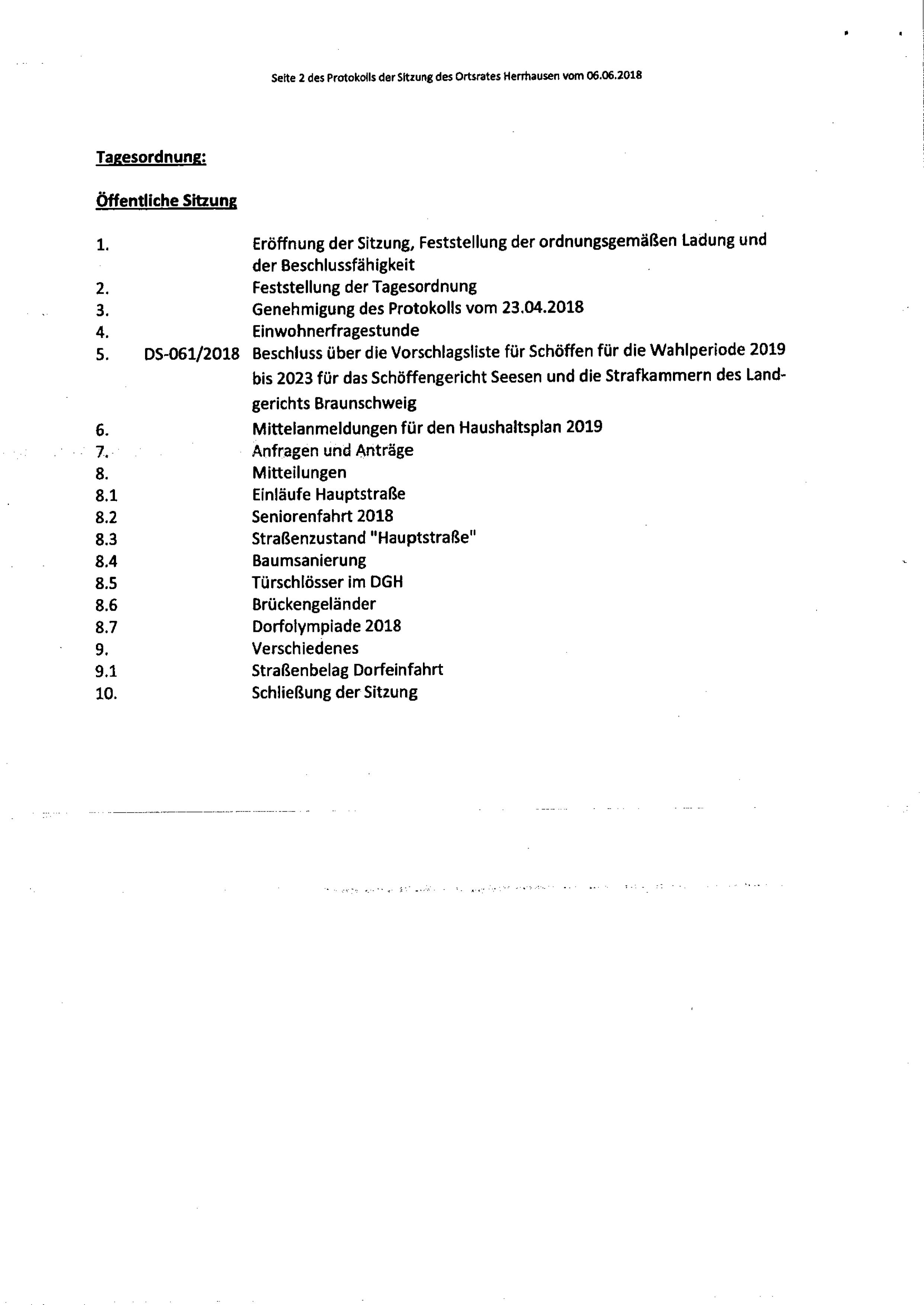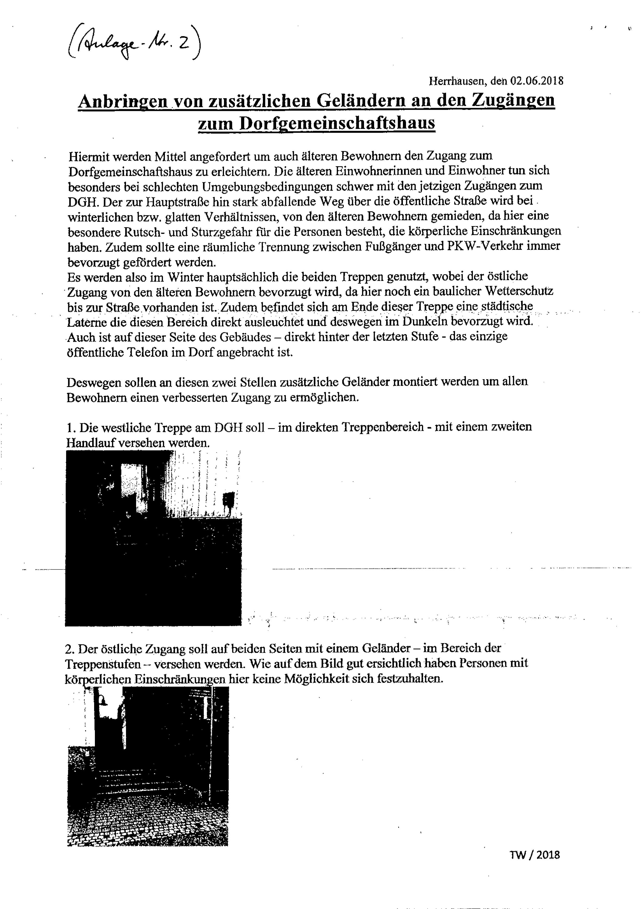 Protokoll über die Sitzung des Ortsrates Herrhausen am Donnerstag, dem 06.06.2018, 19:30 Uhr, in der Gaststätte "Zur Traube".