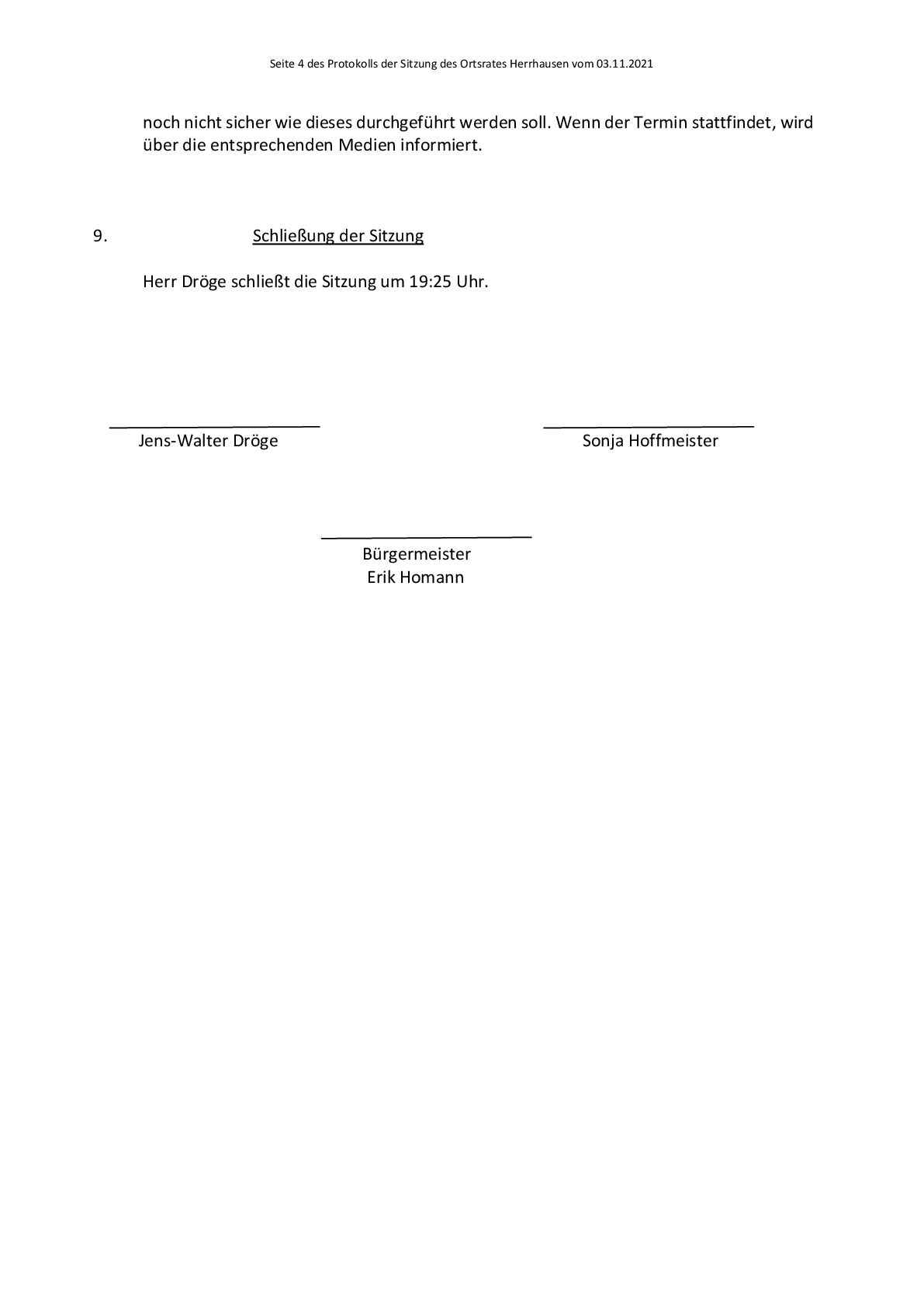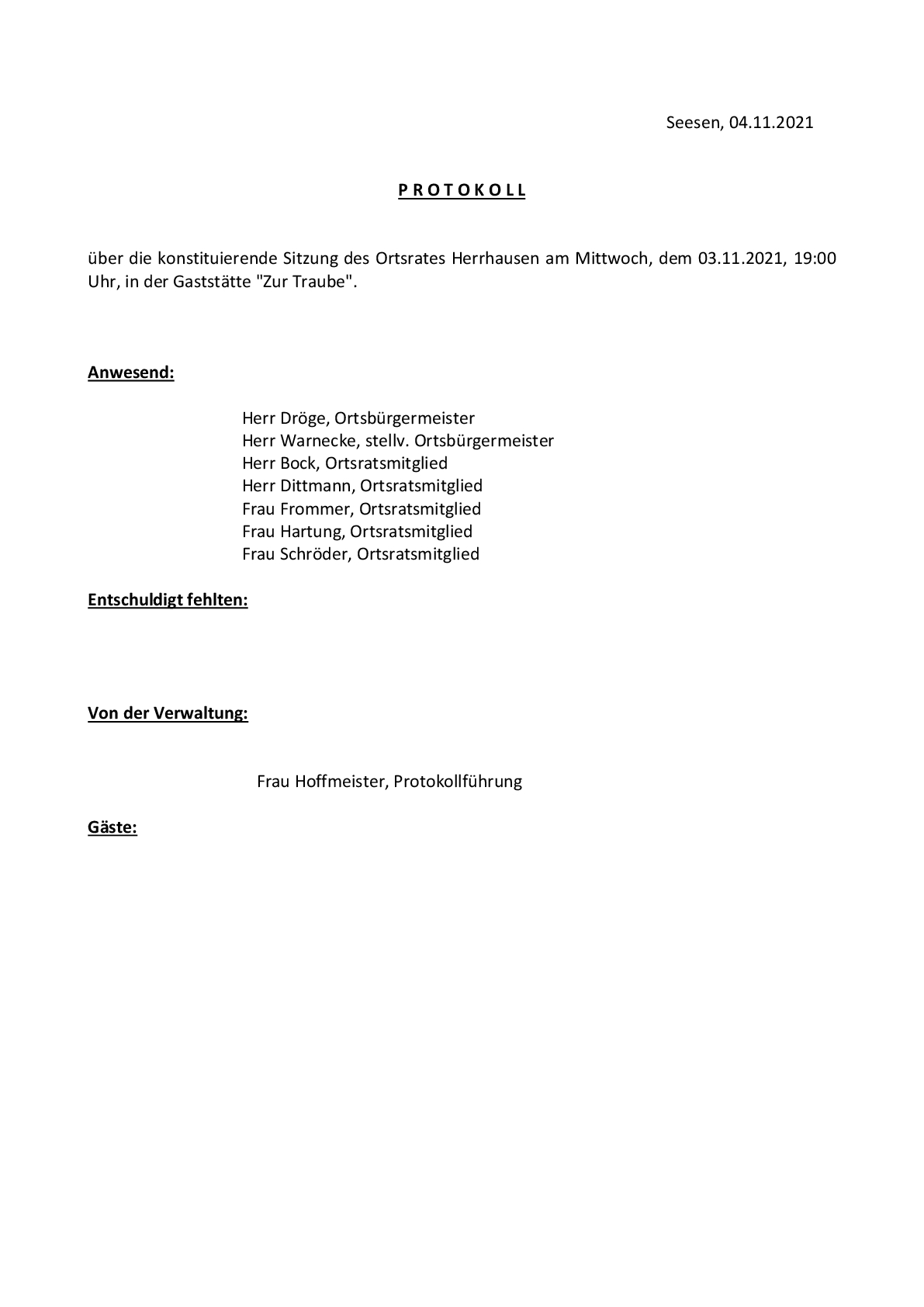 Protokoll der konstituierenden Ortsratssitzung vom 03.11.2021 in der Gaststätte "Zur Traube".