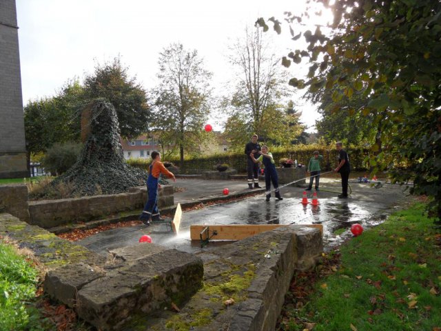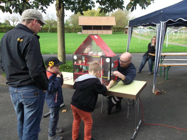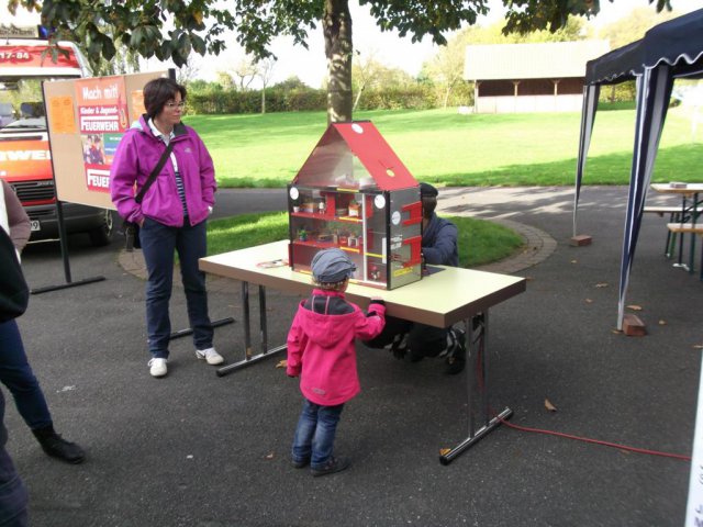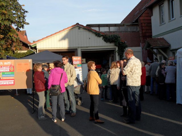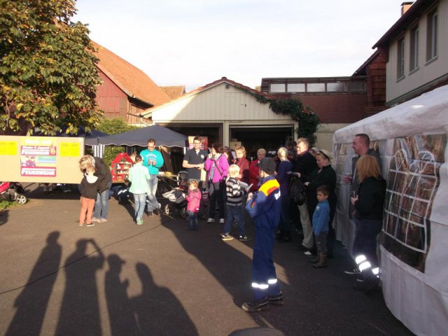 Die Feuerwehr hatte zu diesem Anlass ihre Fahrzeuge aufgefahren, das Feuerwehrhaus geöffnet und diverse Info-Stände aufgebaut. So konnten sich die zahlreichen Besucher ein aktuelles Bild von ihrer Feuerwehr machen und sich bei dieser Gelegenheit z.B. umfassend über den Einbau und den Einsatz von Rauchmeldern informieren lassen. Gleichzeitig präsentierte sich die Jugendfeuerwehr mit an den Feuerwehrdienst angelehnten Spielen, wartete aber auch mit interessanten Informationen auf und gab Einblicke in den Dienstbetrieb.