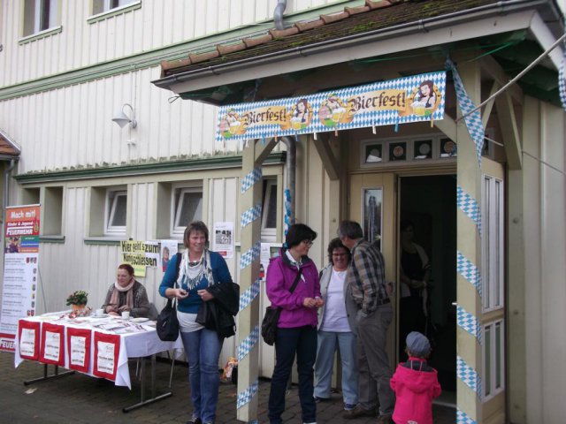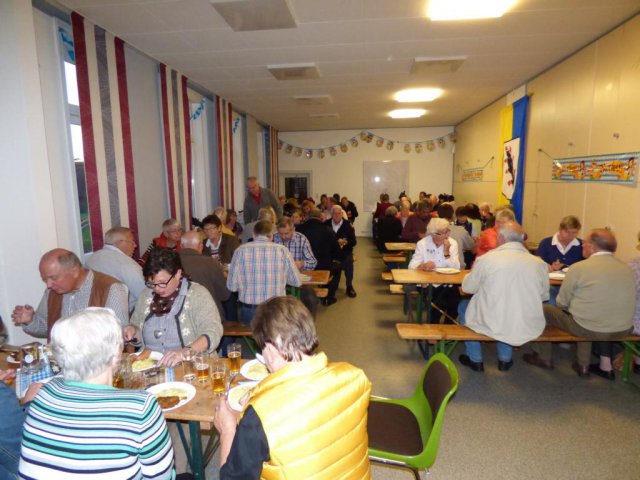 Am späten Nachmittag füllte sich das Festgelände dann noch einmal zusehends, war doch ab 18:00 Uhr zu einem bayrischen Abend geladen. Dabei standen die typischen Spezialitäten ebenso auf dem Programm, wie ein zünftiges Wiesnbier. Schön zu sehen, dass viele dem Motto gefolgt waren und sich entsprechend mit Dirndl, Krachlederner und Janker gekleidet hatten. Im Dorfgemeinschaftshaus hieß es dann auch – ausverkauft bis auf den letzten Platz. Nachdem man sich zunächst mit Haxen, Weißwurst, Regensburger und frisch gebackenem Leberkäse gestärkt hatte und auch angezapft und der erste Durst mit gestillt war, begrüßten Achim Fehlig für die Feuerwehr und Bernd Dittmann für den Schießclub die Gäste und bedankten sich für die tolle Resonanz, das große Interesse an den Veranstaltungen des Nachmittags und das ausverkaufte Haus am Abend. B. Dittmann erinnerte noch kurz an das Fest von 5 Jahren und verlieh seiner Freude Ausdruck, dass wohl auch nach 5 Jahren der Spaß an solchen gemeinsamen Feiern noch ungebrochen ist. Kurzum – wenn Feuerwehr und Schießclub feiern, dann passt das.
