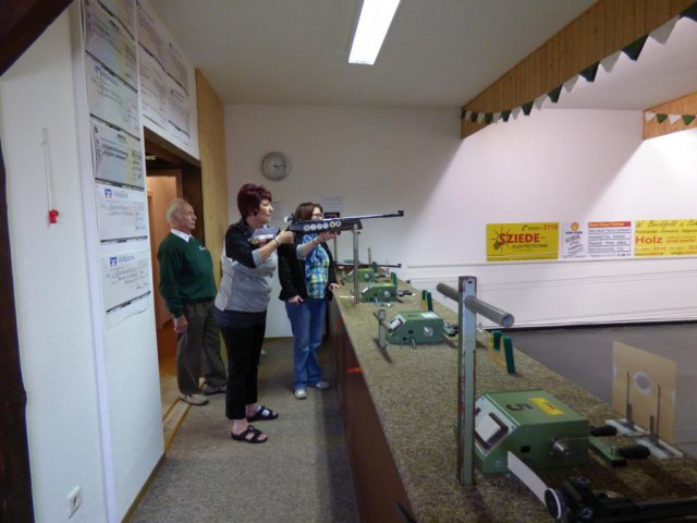 Offen stand aber auch der Schießstand des SC, bei dem gleichzeitig über den gesamten Nachmittag der Wettstreit um die Würden der Dorfkönige ausgeschossen wurde, so dass die Besucher auch einen Einblick in das Wettkampfgeschehen bekamen. Informationen gab's von den anwesenden Schützen zum Schießen mit den verschiedenen Sportgeräten und Wettkämpfen, die auf den unterschiedlichsten Ebenen ausgetragen werden.
