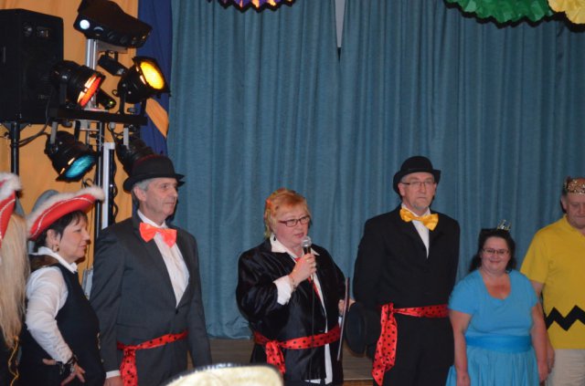 Walter Schröder begrüßte das närrische Volk und bedankte sich bei allen, die zum Gelingen dieses fröhlichen Festes beigetragen haben. Dann übergab er das Mikrofon an Sabine Vibrans, der 1. Vorsitzenden des TSV Herrhausen, welcher in diesem Jahr verantwortlich für die Durchführung des Faschings war. Sabine Vibrans begrüßte ebenfalls die Gäste im gut besuchten Festsaal der Gaststätte "Zur Traube". Sie ließ es sich nicht nehmen und bedankte sich auch ganz persönlich bei allen, die sie bei der Organisation mit Rat und Tat unterstützt haben und bei den Akteuren, ohne die es kein Faschingsvergnügen geben würde. Zum Schluß gab es noch ein besonderes Dankeschön in Form eines "Stärkungspräsentes" für die vier Saalschmücker, die wieder mit sehr viel Engagement den Saal dekoriert und damit der Veranstaltung den richtigen Rahmen gegeben haben.Begrüßt wurde dann das Prinzenpaar des letzten Jahres, Martina und Michael Reineke. Danach marschierten die Funken und der Fünfer-Rat aus und nach einigen Schunkel- und Tanzrunden, zu denen der bekannte DJ Flocke aufspielte, begann das Programm.