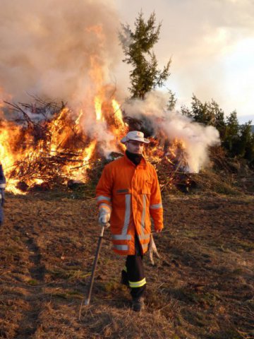 Am Ostersonntag war es wieder soweit und das traditionelle Osterfeuer stand vor der Tür. Die Kameradinnen und Kameraden der Feuerwehr Herrhausen,die Mitglieder der Jugendfeuerwehr, der Ortsrat und einige Herrhäuser Bürger trafen sich bereits am Samstag und bauten das Osterfeuer auf. Durch das schlechte Wetter im Vorfeld der Osterfeiertage war der Feuerplatz leider sehr schlammig, daher entschied man sich die Bewirtung nicht "Auf dem Hainholz" sondern auf halben Weg an der Pumpstation Nettequelle durchzuführen.