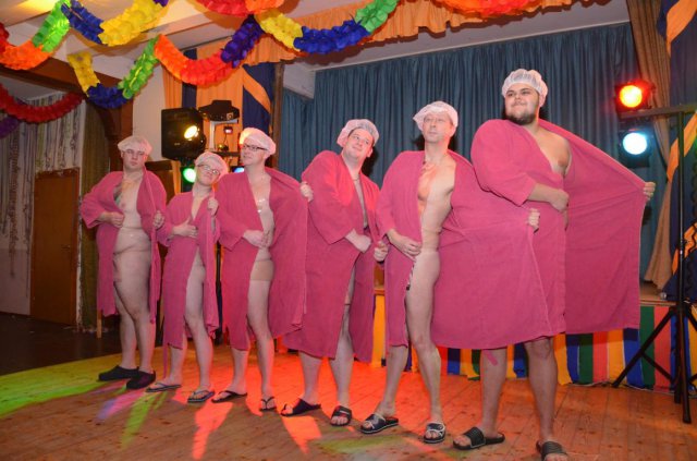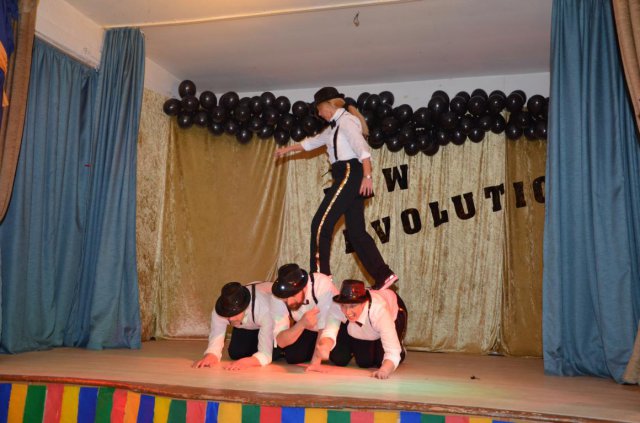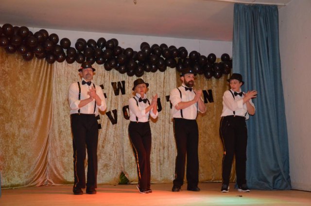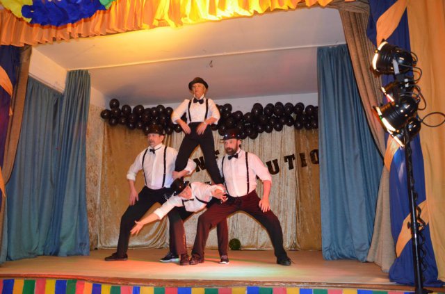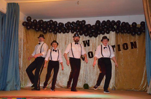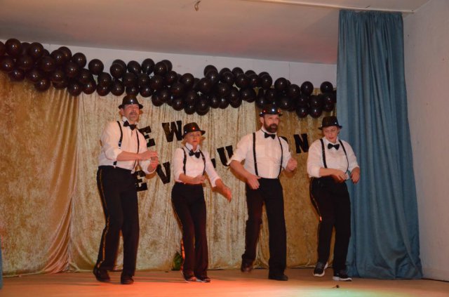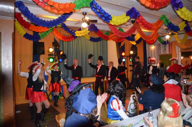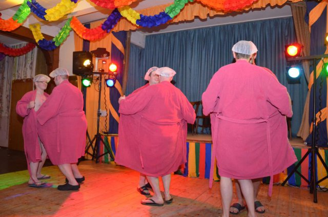 Die Firefighter kamen dann als nächstes an die Reihe und führten einen schon fast frivolen Bademanteltanz auf, der das Publikum wahrlich von den Stühlen riss. Doch die für das Publikum interessanten Körperteile blieben wie durch Zauberhand immer im richtigen Moment verhüllt. Nach einer Zugabe ging dann das Zepter wieder an den DJ Flocke, der die musikalische Leitung dieses Abends hatte. Obwohl damit das Sketch-Programm offiziell beendet war, konnte Achim Fehlig dann noch einen besonderen Auftritt ankündigen, die Gruppe „New Evolution“ hatte sich kurzfristig angemeldet, was dann folgte, war der Höhepunkt des Abends der die Zuschauerinnen und Zuschauer von den Stühlen riss. Die Tanzeinlage mit akrobatischen Figuren ließen keinen kalt, das hatte das Dorf schon seit langem nicht gesehen, ein wirklicher Genuss für die Augen.
