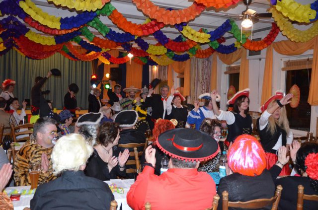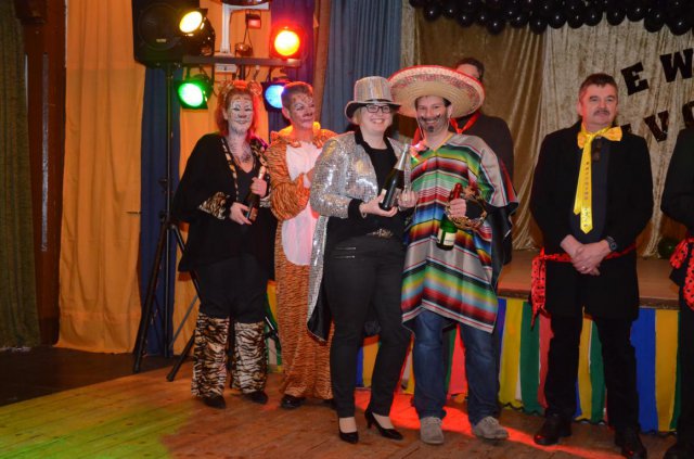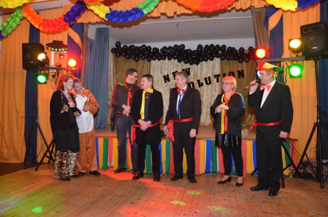 Um Mitternacht folgten dann die letzten beiden Programmpunkte, zuerst wurde das beste Kostümpaar des Abends bekanntgegeben. Das Ehepaar Kolodziej hatte hierbei die Nase vorn. Nun kam es dem Fünfer-Rat noch zu, das neue Prinzenpaar zu erwählen. Einstimmig hatte der Fünferrat beschlossen das Jens-Walter Dröge und Gary Mirwald das neue Prinzenpaar, als Jens der Erste und Gary der Erste, werden sollte. Beide konnten dann unter dem Jubel ihrer neuen Untertanen die Insignien der „Narrenmacht“, die Karnevalskronen, empfangen. Bis spät in die Nacht huldigte dann das Volk ihren neuen Hoheiten.