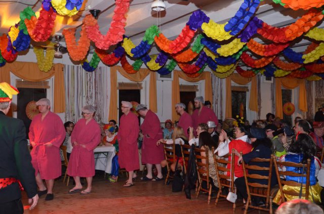 Zunächst zeigte die Jugendfeuerwehr eine rhythmische und akrobatische Bechereinlage, dass die Hände nur so flogen. Nach der ersten Tanzpause folgten die Akteure des TSV Nettegirls, Hupfdolen und Sambuca-Schwestern. In einem Wartezimmer-Sketch konnte man gut den Gedankengängen der wartenden Patienten folgen, was bei dem Publikum dann auch so manchen Lacher auslöste. Nach dieser prachtvollen Einlage folgte dann eine weitere Tanzpause, was die Närrinnen und Narren auch ausgiebig nutzten
