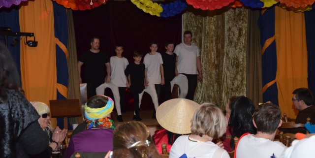 Nach einer weiteren Tanzrunde traten die Mannen der Feuerwehr mit einem Schattenspiel auf und ließen erahnen, was sich in gewissen Familienbanden abspielt. Aber auch kleine Zaubereien und Tanzeinlagen wurden so im Schattenspiel dargeboten.