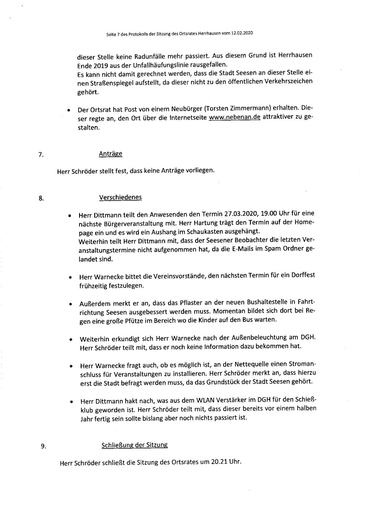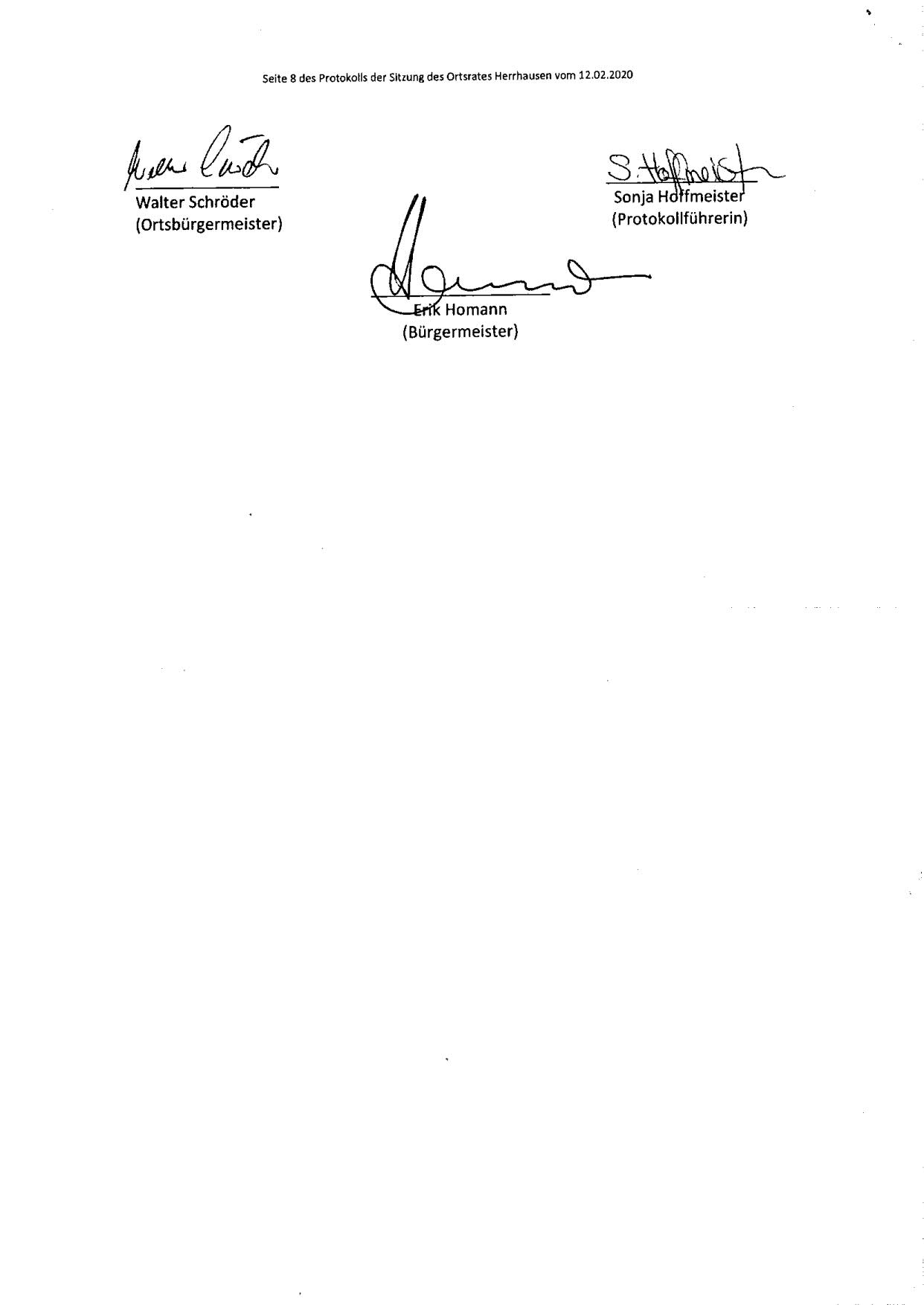Protokoll über die Sitzung des Ortsrates Herrhausen am Dienstag, dem 12.02.2020, 19:30 Uhr, in der Gaststätte "Zur Traube".