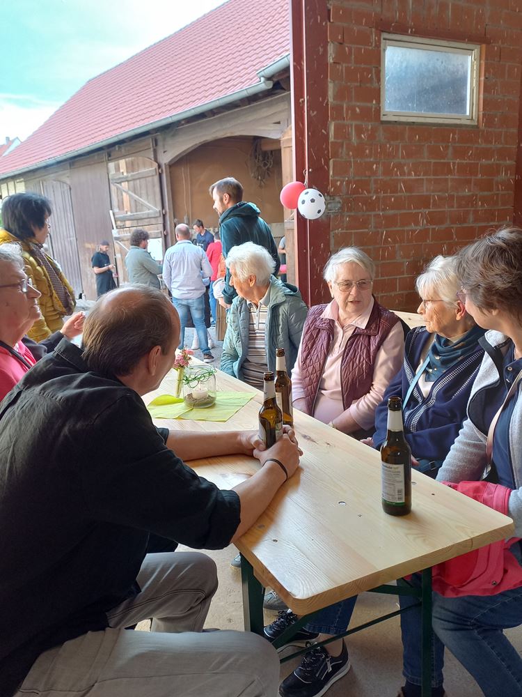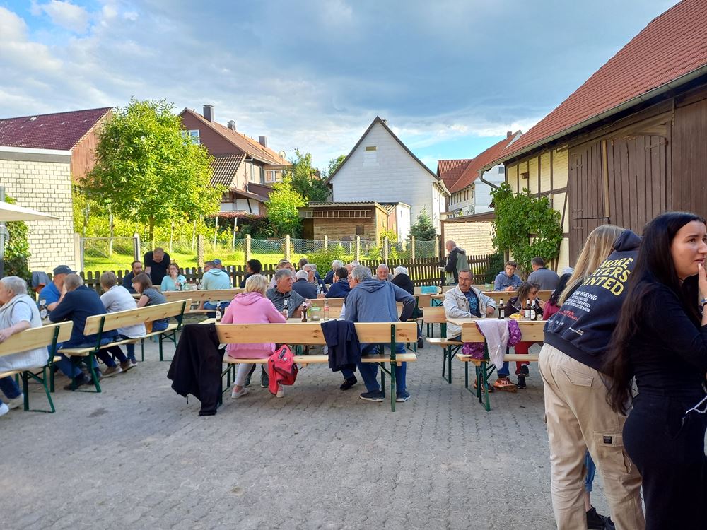Auf Grund der unsicheren Wetterlage fand die Veranstaltung nicht wie bewohnt am „Alten Spielplatz“ in der Mitte der Hauptstraße statt, sondern wurde auf „Thudts Hof“ verlegt, sodass auch ein eventueller Regenschauer niemanden etwas ausmachen konnte.